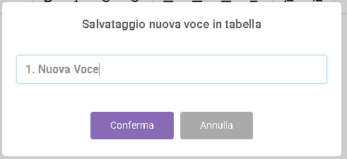 Il campo è anche editabile: se si digita un valore non ancora presente in tabella, il sistema propone di aggiungerlo automaticamente dopo conferma dell'utente.