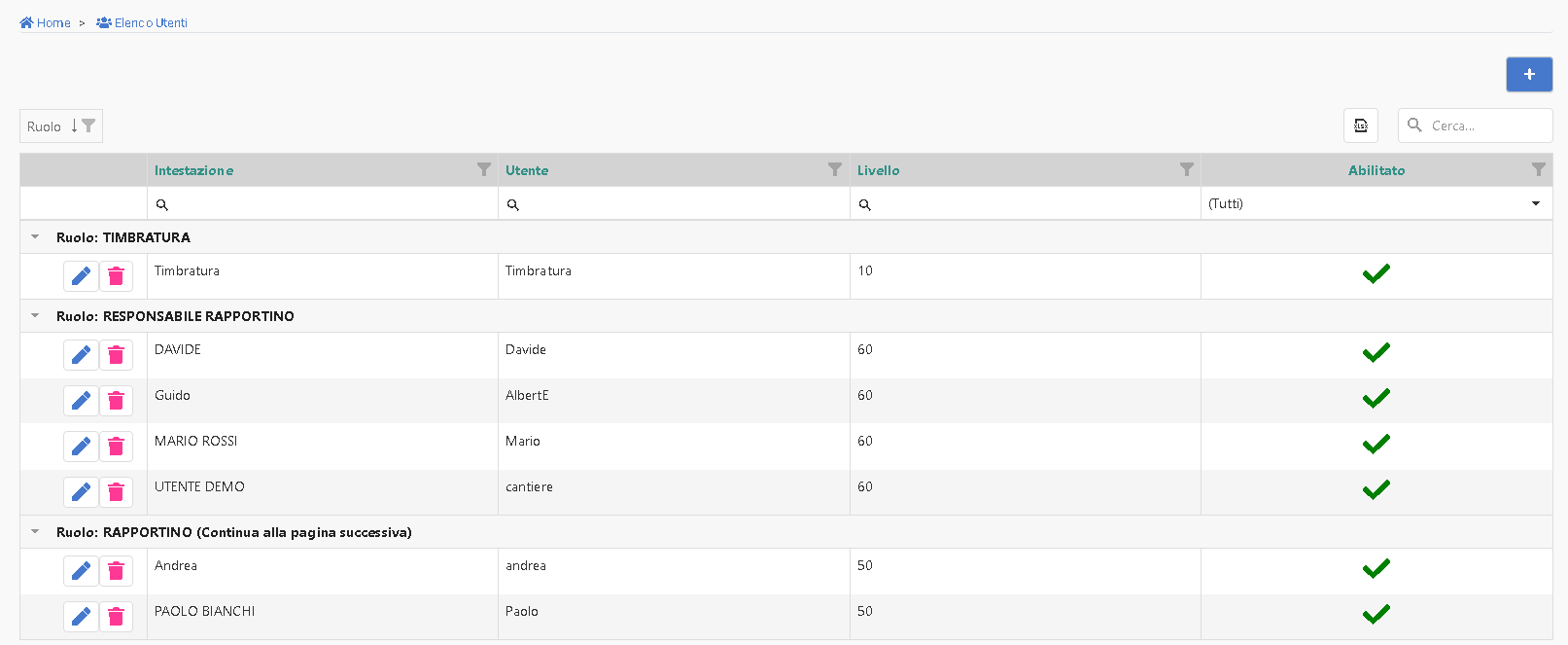 La visualizzazione "standard" di questa griglia è impostata a: "Raggruppamento per Ruolo".
